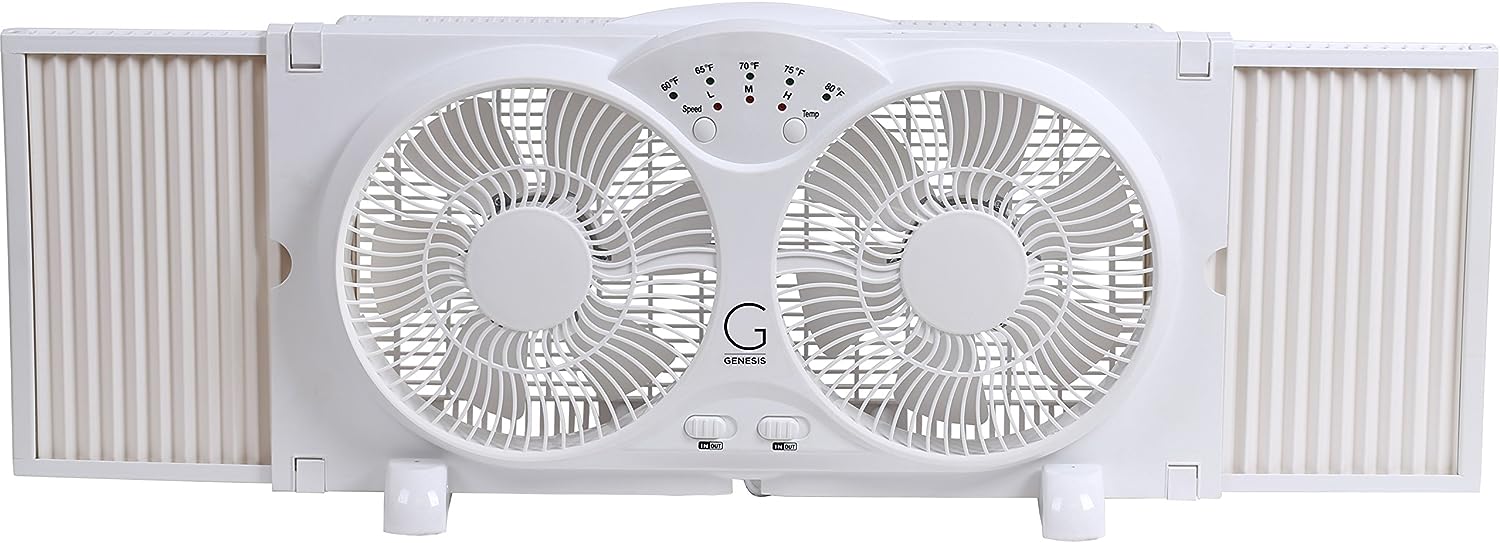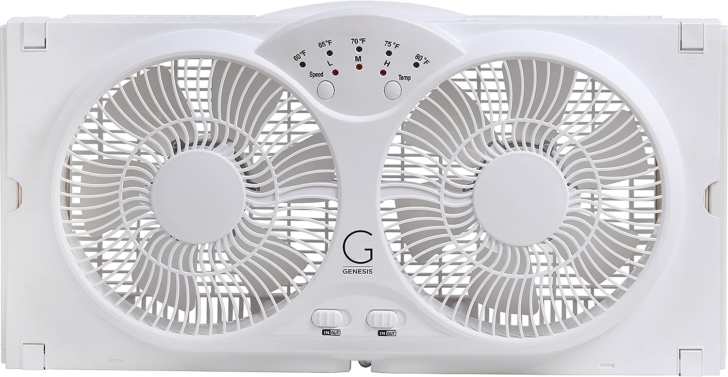 Genesis Twin Fan High Velocity Reversible AirFlow Fan, LED Indicator Lights Adjustable Thermostat & Max Cool Technology, ETL Certified, White (A1WINDOWFAN)
